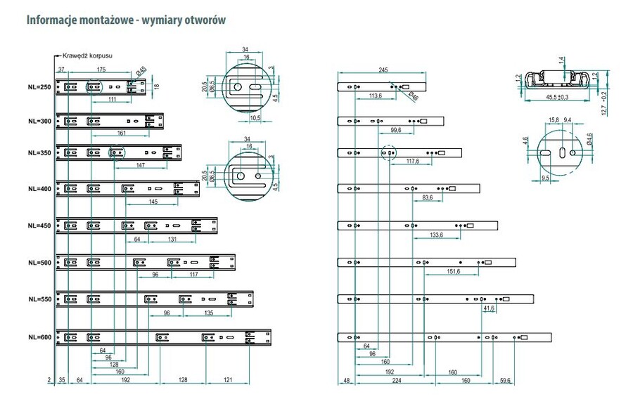 - występuje w 8 długościach: L-250, L-300, L-350, L-400, L-450, L-500, L-550, L-600