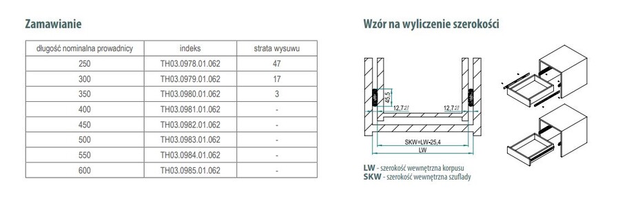 - zastosowanie do szuflad wewnętrznych i zewnętrznych